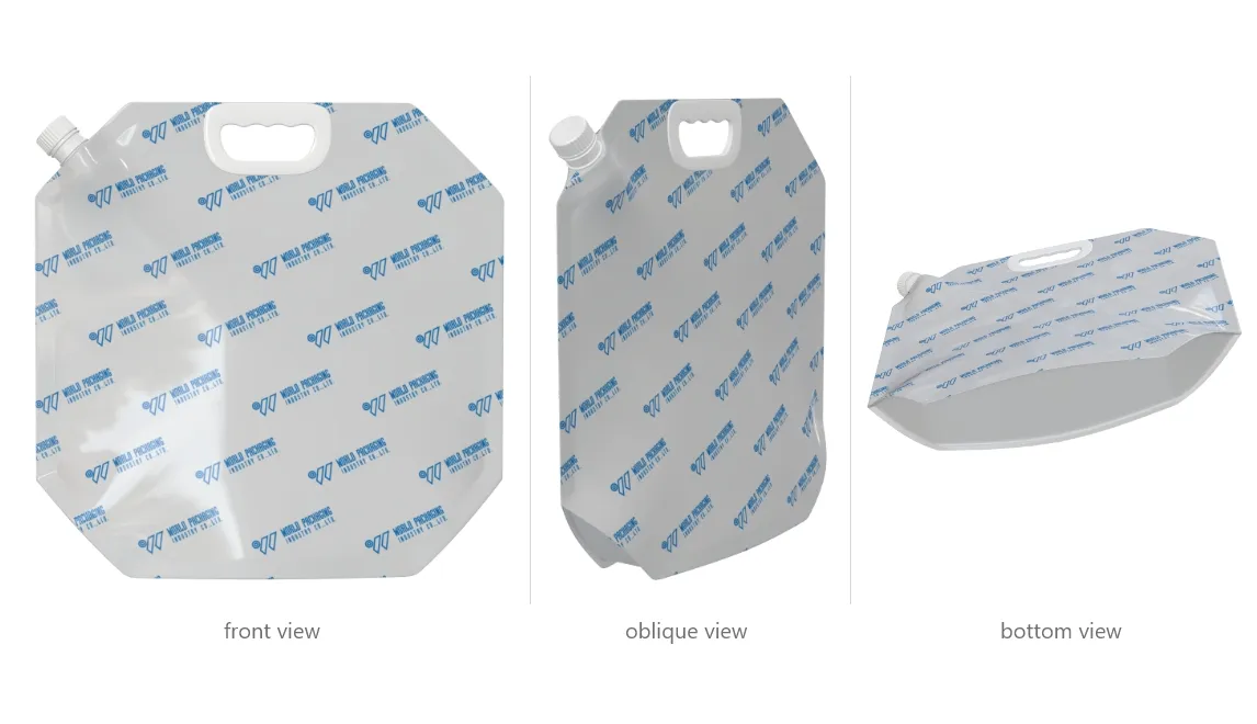 - Side Spout Pouch with Handle : Designed for larger quantities and easy portability, suitable for products like laundry detergents, cleaning liquids, or bottled water.