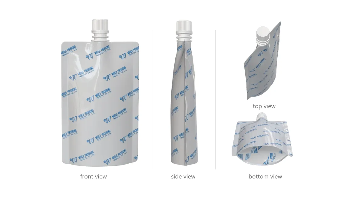 - Side Spout Pouch : Perfect for liquid products, such as dishwashing liquids, fabric softeners, fruit juices, or condiments.
