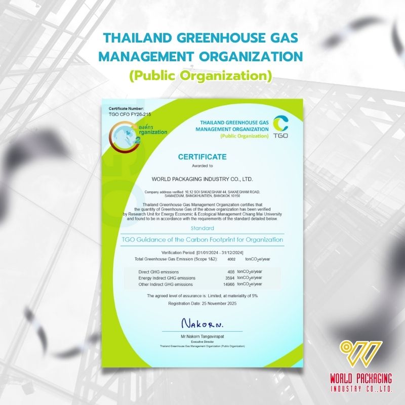เราได้รับการรับรองจาก องค์การบริหารจัดการก๊าซเรือนกระจก (องค์การมหาชน)